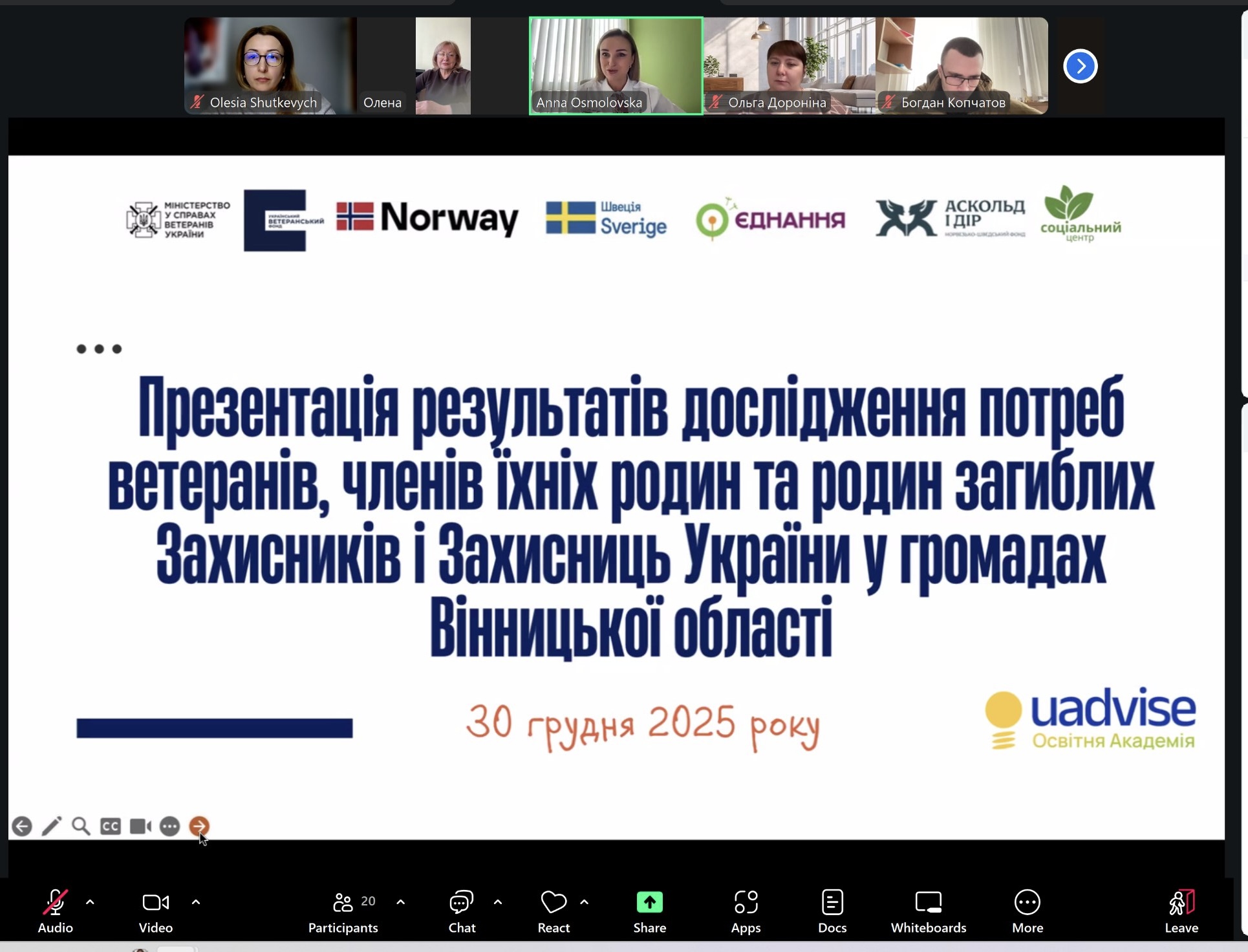 UAdvise презентувала аналітичну брошуру за результатами дослідження потреб ветеранської спільноти Вінниччини
